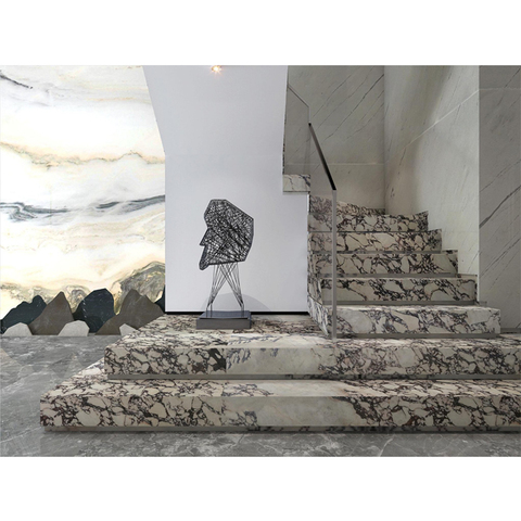 Calacatta Viola แผ่นหินอ่อนบันไดบันไดบันไดหินอ่อนสีขาวทันสมัย